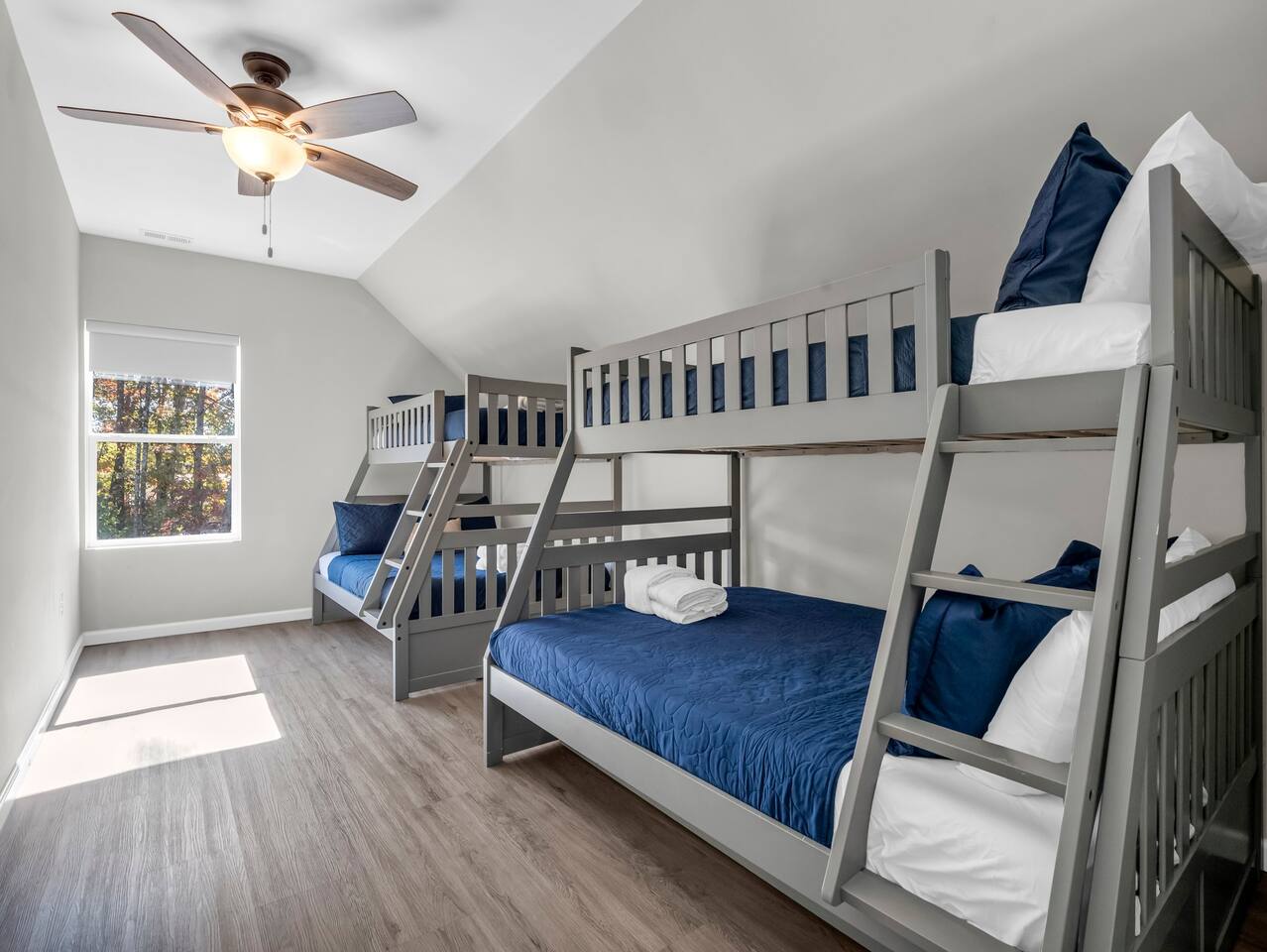 Welcome to your ultimate getaway! This spacious 5-bedroom home is perfect for families and groups, offering comfort, luxury, and fun all in one place. Based on NC commission laws, we are required to send you a rental agreement after booking with us. Main Floor Highlights: • Relax in the master suite, featuring a king-size bed and an ensuite bathroom with a luxurious tub and stand-up shower. • The second bedroom on this level has a cozy twin bed with a twin trundle, perfect for additional guests. • Another bedroom with a king bed offers comfort and style. • You’ll find an additional full bathroom in the hallway. Entertainment & Technology: • The living room is equipped with a Sonos speaker for great sound quality, and the Amazon Alexa system makes controlling the lights and ambiance effortless. Smart TV in the living room. • Upstairs, a game lover’s dream awaits with both a pool table and a ping pong table. Upper Floor Amenities: • One bedroom is set up with two full/twin bunk beds, perfect for family members or friends. • Another bedroom with a queen bed offers added privacy and comfort. • There’s also a full bathroom with a stand-up shower in the hallway. Outdoor Oasis: • Unwind in the large hot tub set or enjoy the fresh air on the outdoor patio. The outdoor kitchen area has a Blackstone for you to enjoy as well! This home is designed with relaxation and entertainment in mind, offering a beautiful, tech-friendly, and spacious retreat for your stay. We do allow you to bring your pups, no more than two per stay. Please make sure to include them in your reservation as there is a $25 per pet, per night policy!